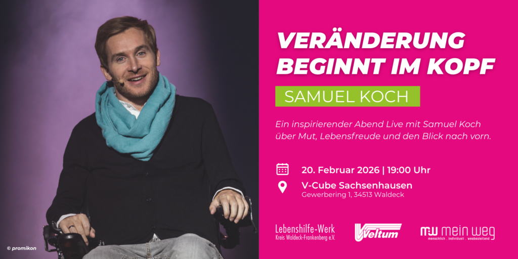 Die Veranstaltung wird durchgeführt von dem Lebenshilfe Werk Kreis Waldeck-Frankenberg e. V. , mein weg (eine Marke des Bathildisheim e. V.) und der Veltum GmbH. Gemeinsam setzen wir mit diesem Event ein bewusstes Zeichen für Inklusion, Teilhabe und gesellschaftliche Verantwortung. Ziel ist es, gemeinsam Räume für Begegnung, Austausch und neue Perspektiven zu schaffen.